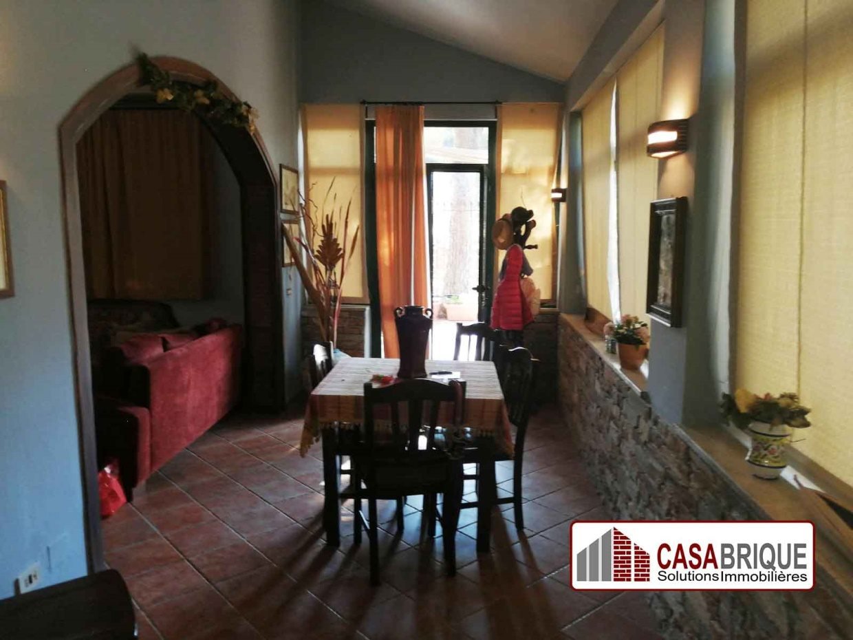 L'abitazione di circa 120 mq, situata in un contesto signorile, è così disposta: cucina soggiorno con angolo camino, camera da letto, due camerette, bagno.